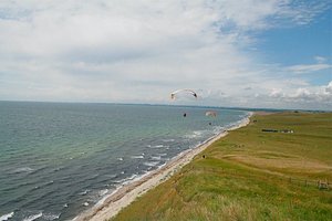 Superbe site de soaring sur plusieurs kilomètres, on peut atterir à mi-pente ou sur la plage si ça ne tient pas. Il y a un port de pêche où manger du bon poisson et des mégalites qu'on peut survoler si les conditions sont bonnes.